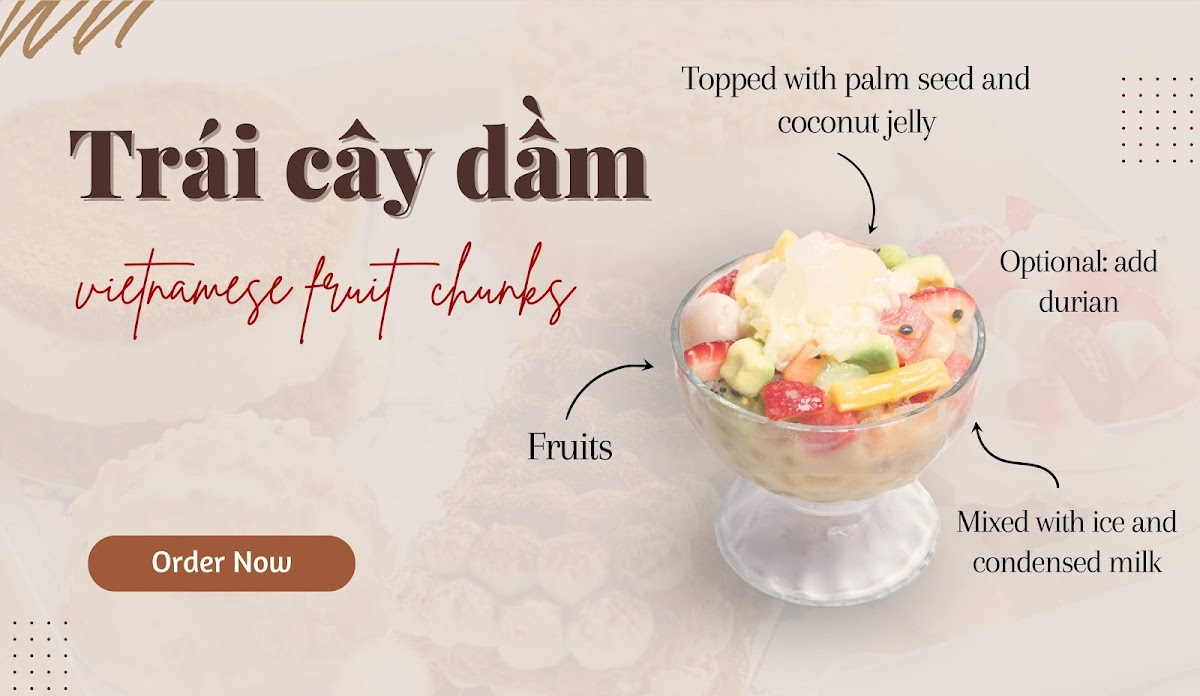 In addition to beverages, the menu features a selection of Fruit and Avocado Chunks, including variations with durian and coconut, available with or without ice. These items serve as light snacks or refreshing additions alongside drinks.
